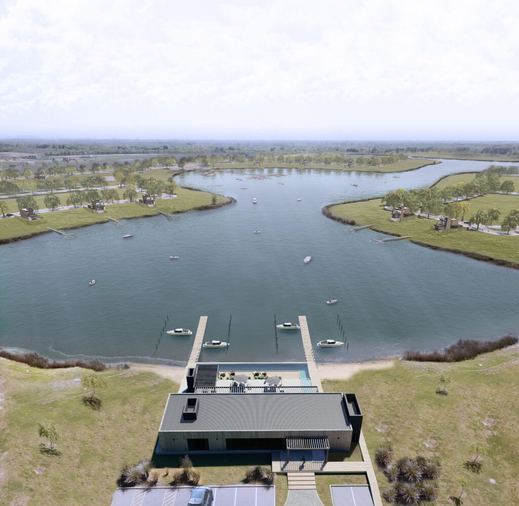 El masterplan se despliega sobre 25 hectáreas de espejos de agua navegables y 229 lotes de aproximadamente 900 m², de los cuales el 70% cuentan con salida al río y amarra propia. Naudir Delta incorpora distintas tipologías de amarras que se adaptan a cada estilo de vida: Amarra Delta, con tablestacado natural y muelles largos, en sintonía con el entorno ribereño. Amarra con tablestaca de madera, que ofrece proximidad inmediata a la embarcación. Y por último Amarra Canal, con contacto directo a los canales navegables.