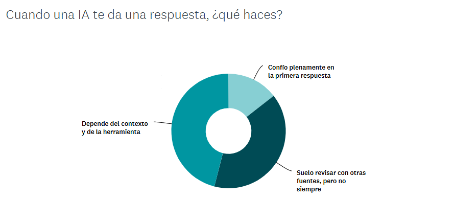 Uno de los datos destacados de la encuesta es que el 80% indicó usar la IA (45% lo hace frecuentemente, y 35% ocasionalmente). Asimismo, el 55% afirmó que no chequea siempre la información obtenida. El 14% no lo hace nunca, y el 39% lo hace solamente a veces. Desde ESET destacan que esto puede ser muy riesgoso.