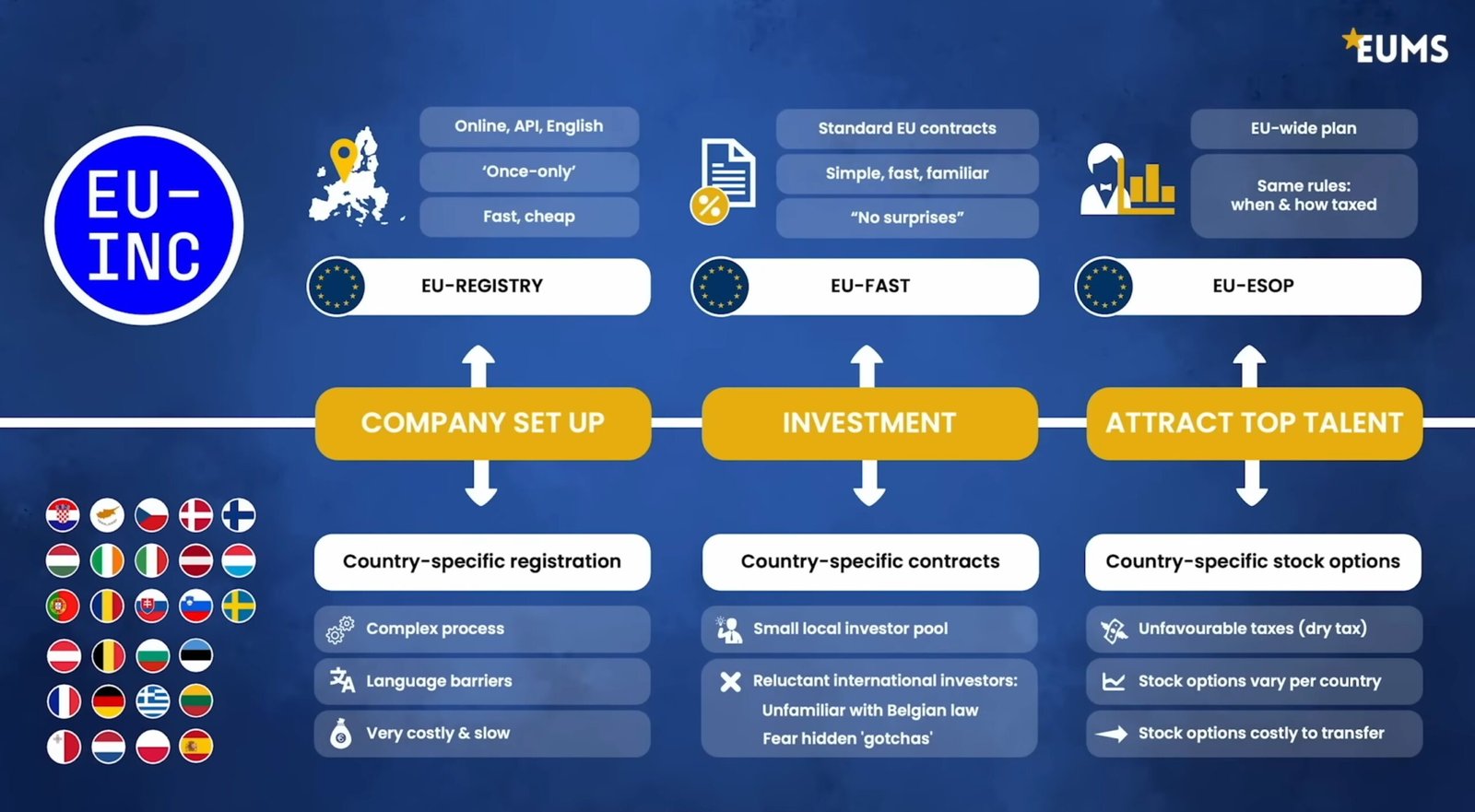 La propuesta de la EU INC se asienta sobre varios ejes estratégicos que buscan agilizar la vida administrativa de las compañías tecnológicas: